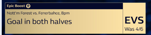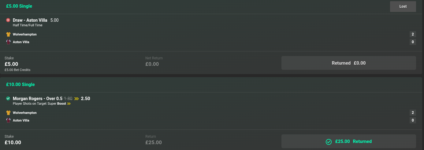 (It was a winning boost on Rogers with 365 and a losing £5 FB HT/FT bet*