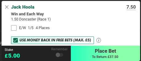 I won’t put that in results and I suggest you use the FB on the bet advised for the Ladbrokes FB advise (to follow)