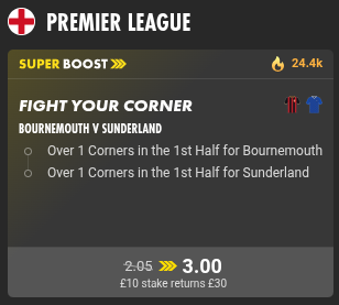 £10 Over 1 Corners for both sides in the first half @ 3.0