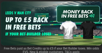 Bet365 £5 Refund Offer – Leeds v Man City 17.30