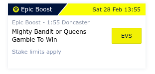 £10 Mighty Bandit or Queens Gamble to win the 1.55 Donc @ Evens
