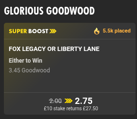 £10 Fox Legacy or Liberty Lane to win the 3.45 @ 2.75