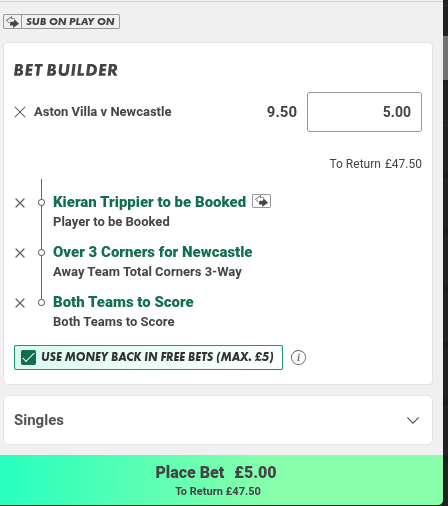 Bet365 £5 Refund Offer – Aston Villa v Newcastle