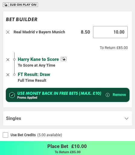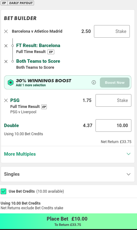 £10 Both Teams to Score @ evens