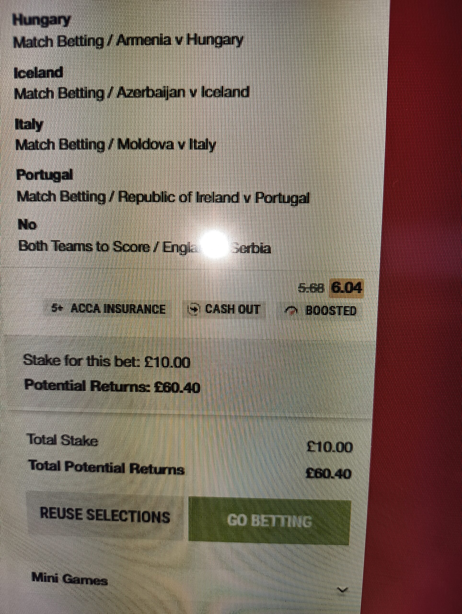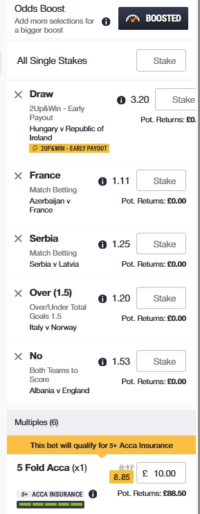 Close one with the 96th minute winner for Ireland downing the Acca – of course we couldn’t have traded out with that being one the early games.