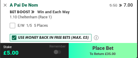 At least the other bet with Ladbrokes did come up with a 9/2 winner with the £10 FB.