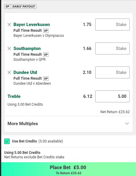 Man City, Over 1.5 @ Southampton, Millwall, Real Madrid £2 @ 1.14/1