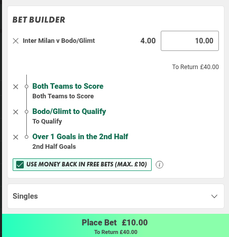 Bayern @ 1.35, Over 2.5 @ Man City @ 1.15, Inter @ 2.0, RC Lens @ 1.95, Millwall @ 1.36