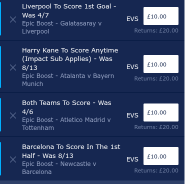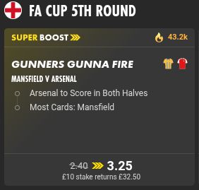 (It was a winning boost on Rogers with 365 and a losing £5 FB HT/FT bet*