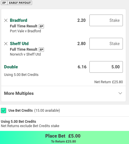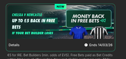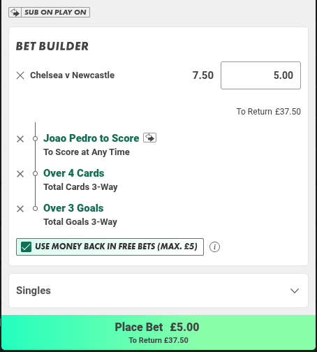 £5 Both Teams to Score, Chelsea to win, Delap 2+ fouls, Lavia 1+ fouls @ 6.0