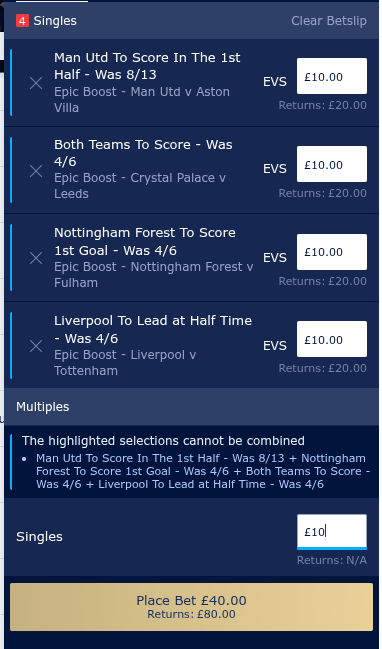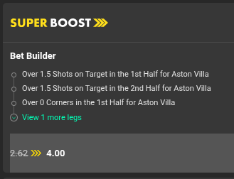 Bet365 Super Boost (already inplay, currently losing – posted this morning)