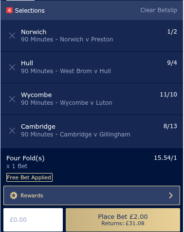 £10 Arsenal to score in both halves and Mansfield most cards @ 3.25